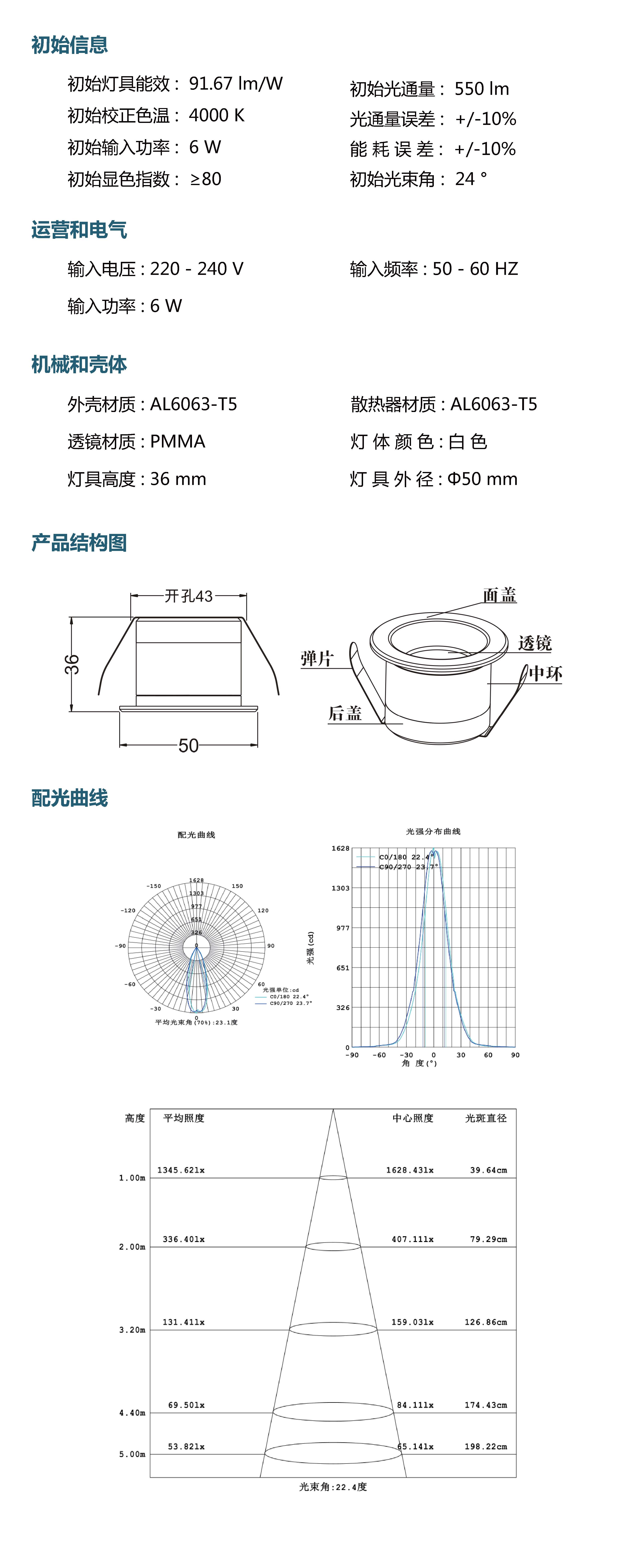 光  束 角: 24 °