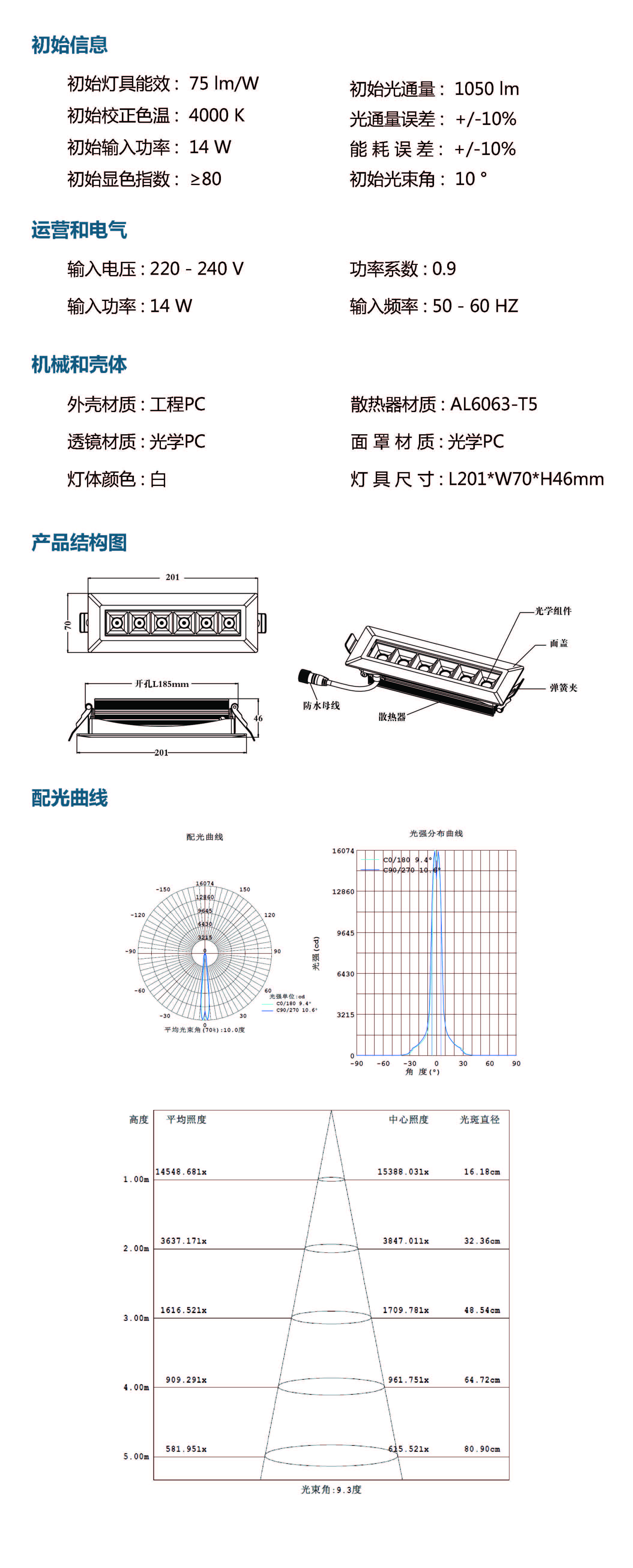 光  束 角: 10 °
