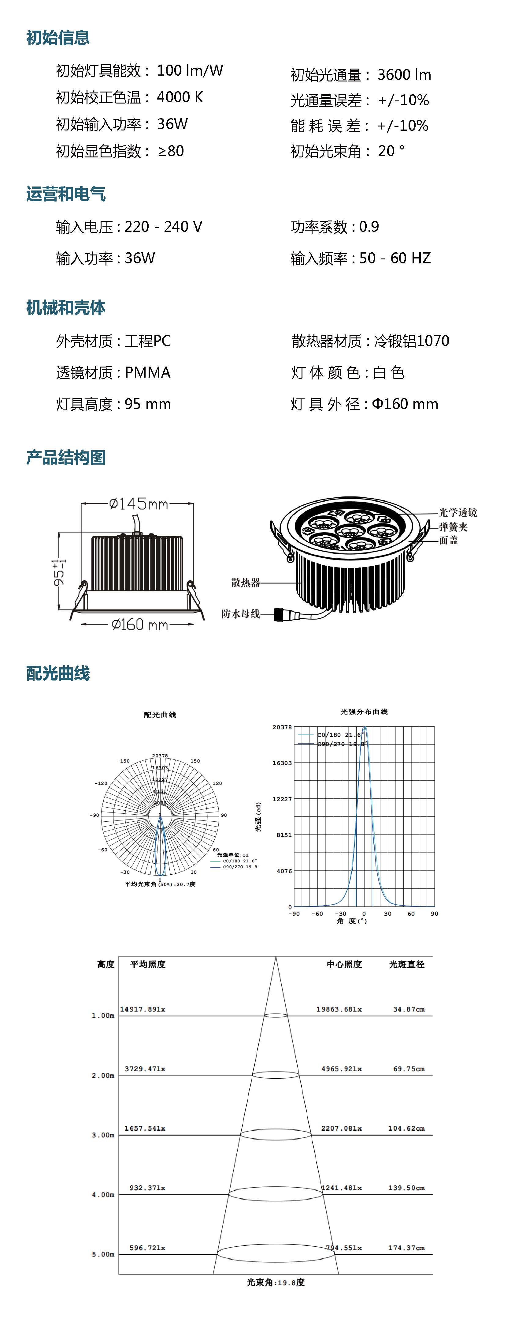 光  束 角: 20 °