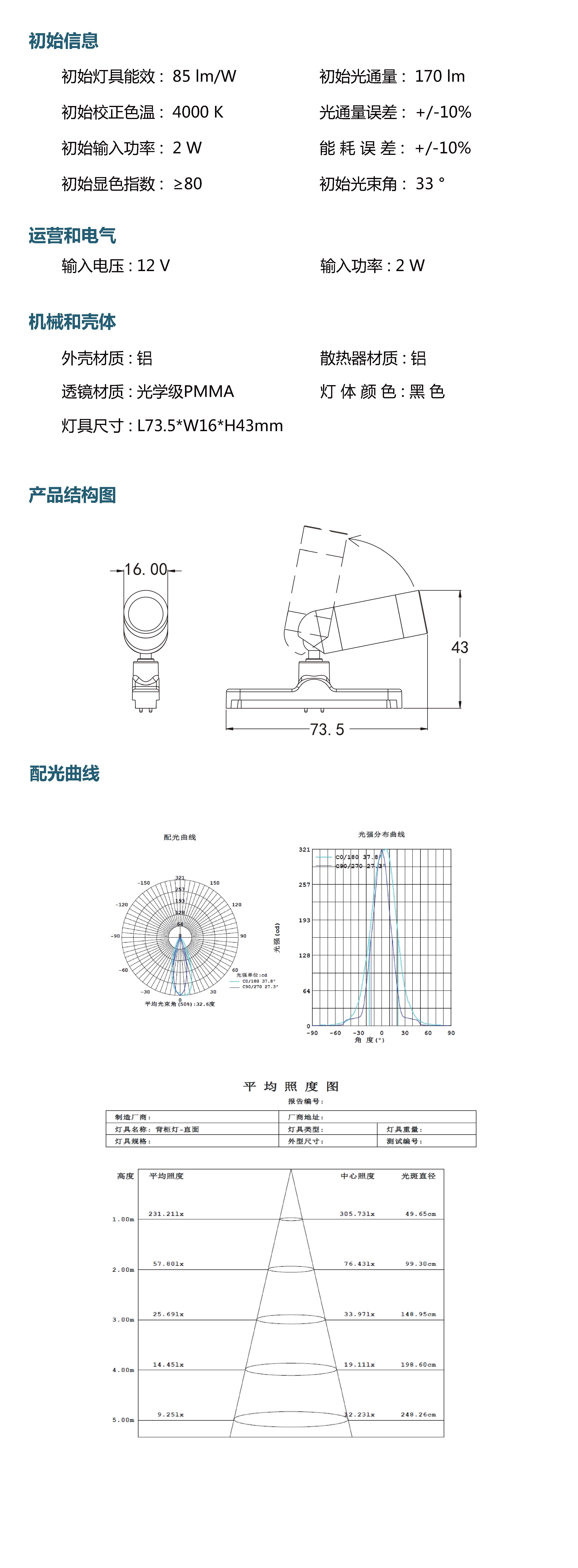 光  束 角: 33 °