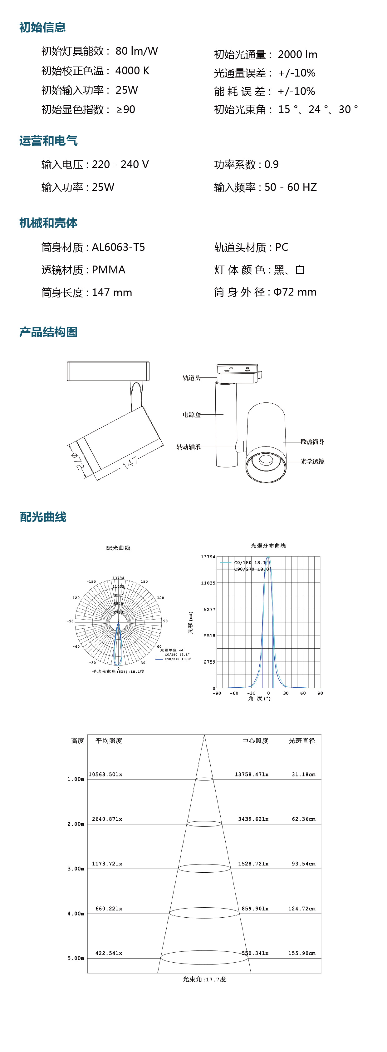光  通  量: 2000 lm