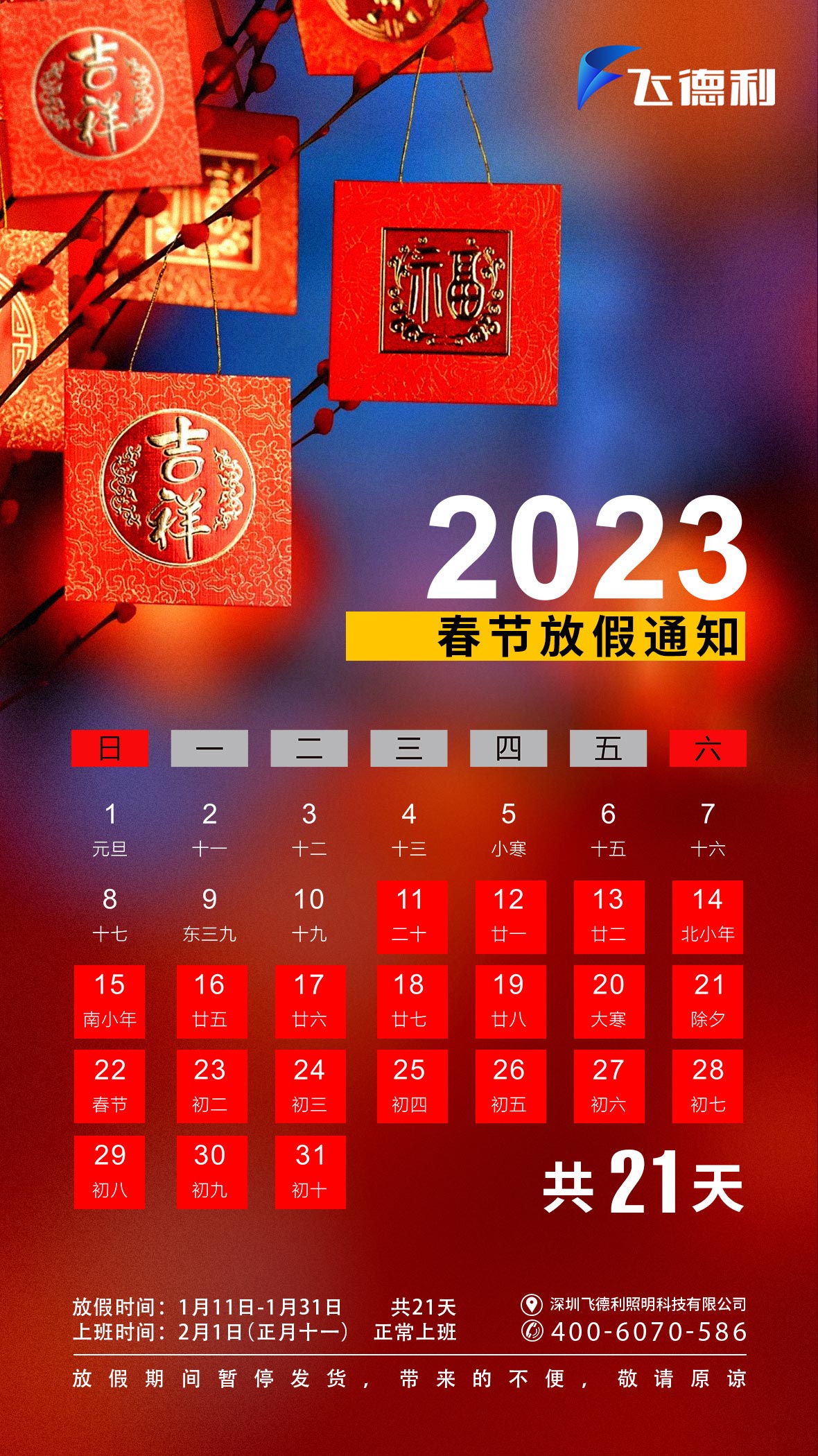 2023 飛德利春節放假通知